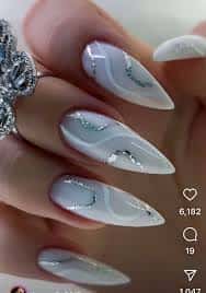 Se você adora um brilho, aplicar glitter prateado sobre um esmalte branco é uma escolha certeira. Você pode optar por cobrir toda a unha ou apenas a ponta para um efeito degradê.